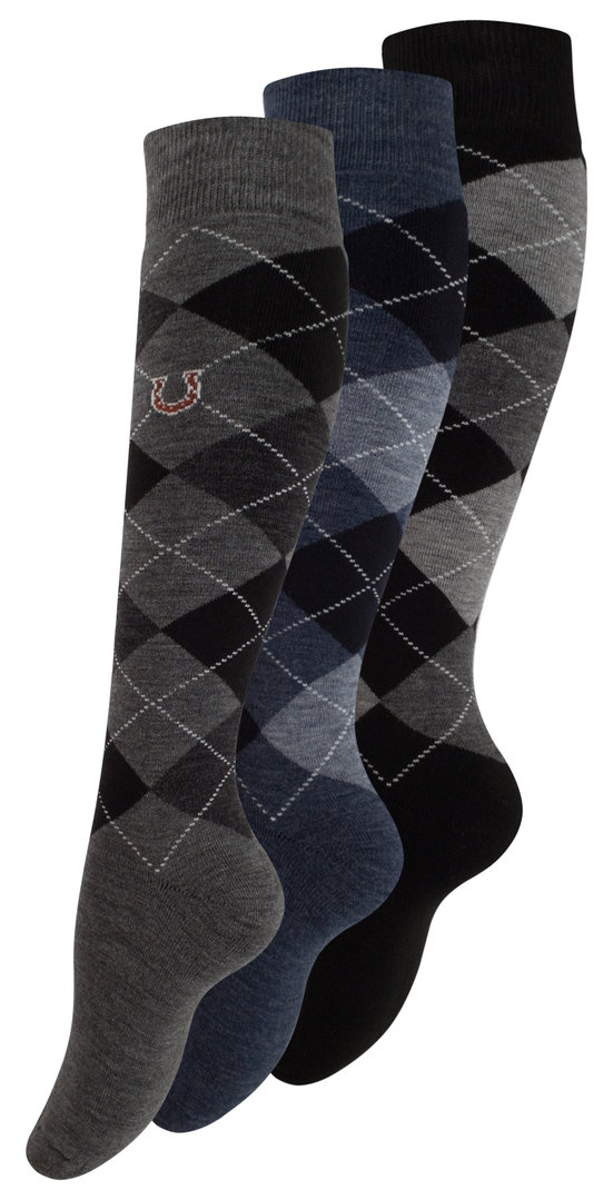 3er Pack Damen Thermo Reitkniestrümpfe mit Rautenmuster