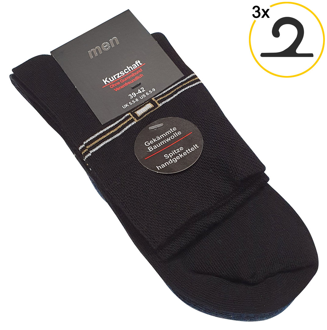 Herren Kurzschaftsocken aus gekämmter Baumwolle ohne Gummibund - ohne Naht im 3er Pack