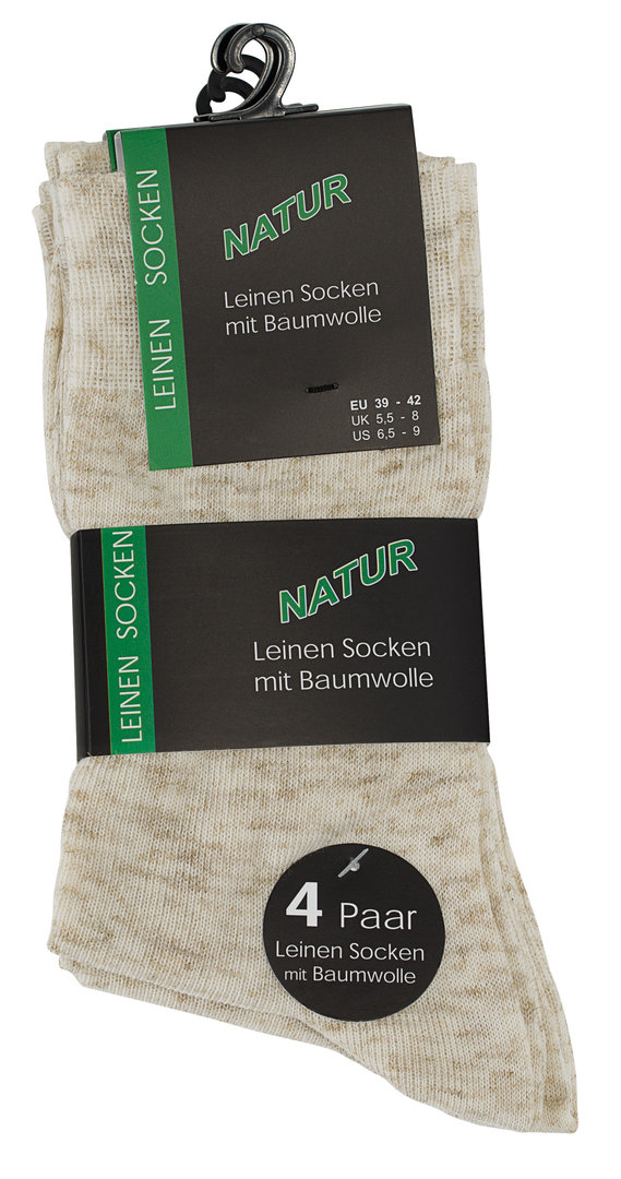 weicher Komfortbund | venenfreundlich | flache Zehennaht | klimaregulierende Eigenschaften durch den Baumwollanteil | sehr robust und strapazierfähig durch den Leinenanteil | angenehm weich | sehr naturnahes Tragegefühl