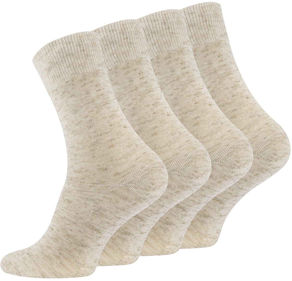 Herren Baumwoll-Leinen Socken "NATUR" in beige meliert im 3er Pack