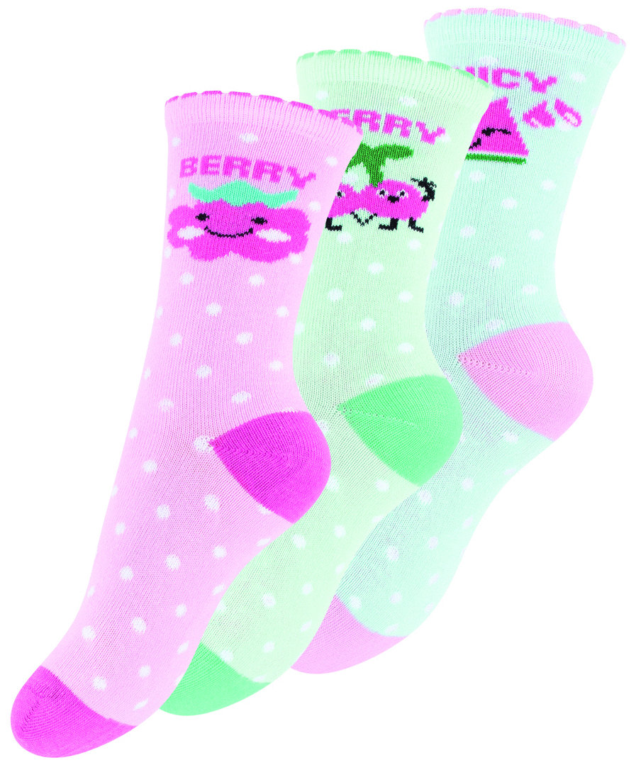 3er Pack Kinder Baumwoll Socken mit Frucht-Motiven