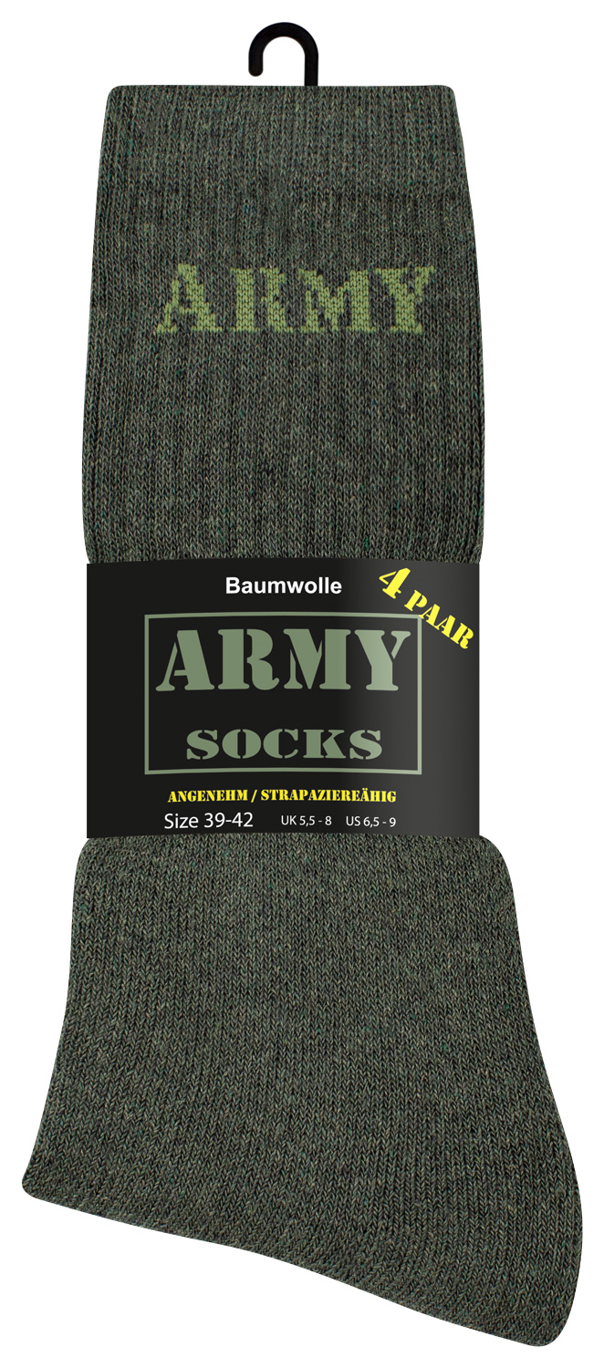 Strapazierfähige Herren ARMY-Socken aus Baumwolle im 4er Pack