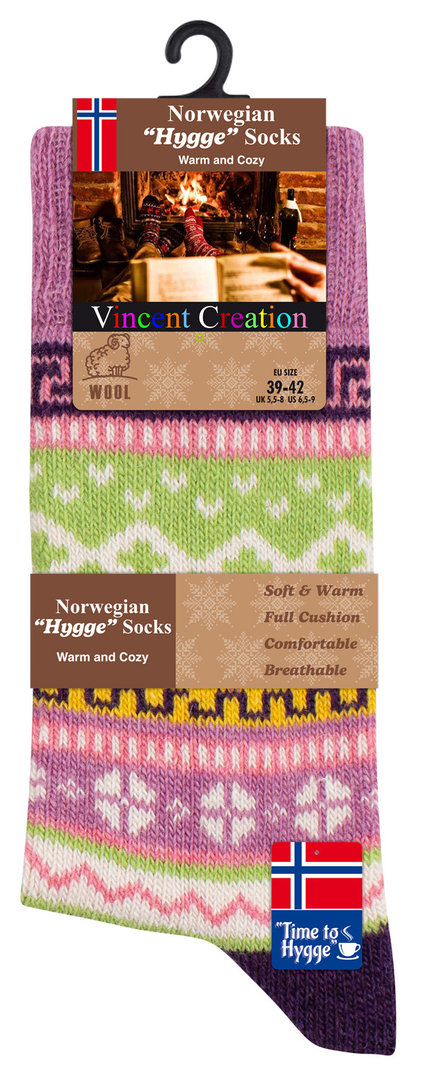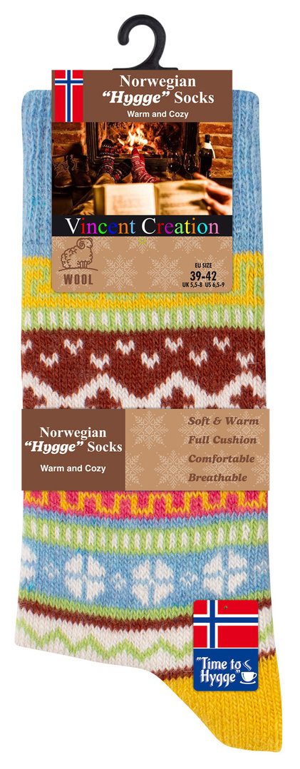 Damen NORWEGER Stricksocken HYGGE mit Wolle und bunten Designs im Einzelpack