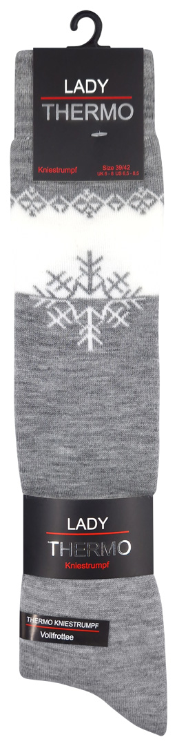Damen Vollfrottee Thermo-Kniestrümpfe mit Schneeflocken Motiv im 3er Pack