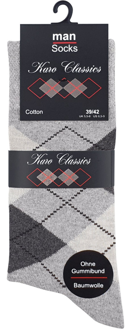 Herren Baumwoll Socken "Karo Classics" ohne Gummibund im 5er Pack