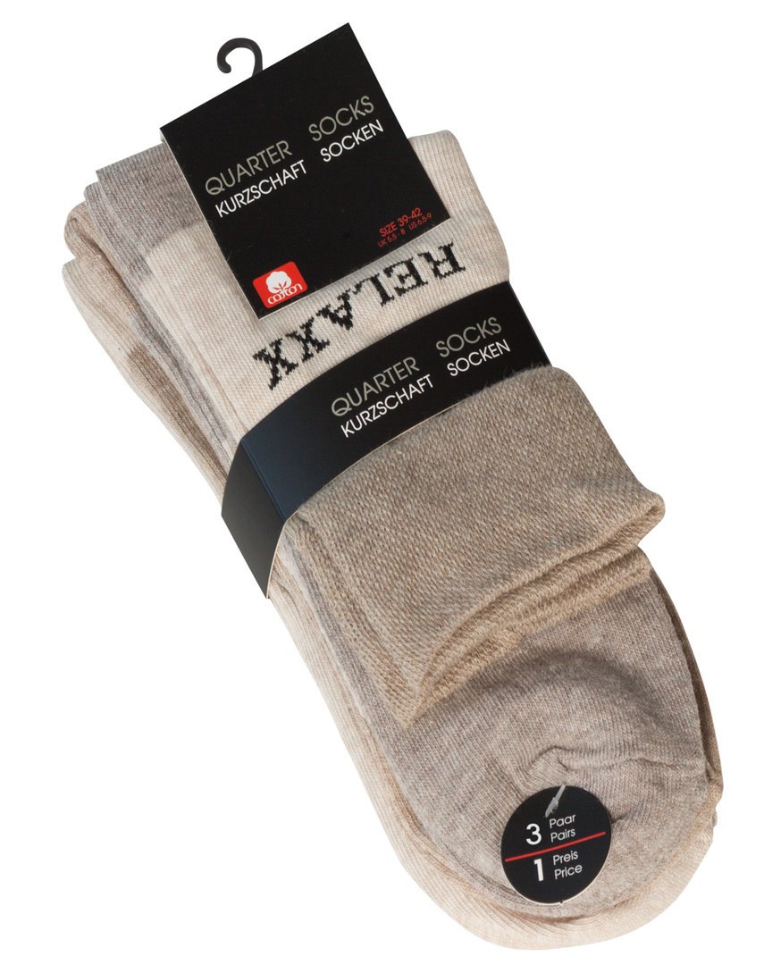 Herren Baumwoll Kurschaftsocken "RELAXX" ohne Gummibund im 3er Pack