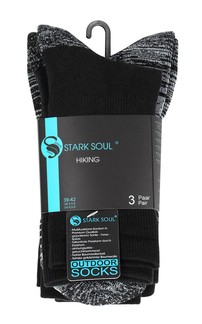 Stark Soul® Unisex Trekkingsocken mit Frotteesohle aus gekämmter Baumwolle im 3er Pack