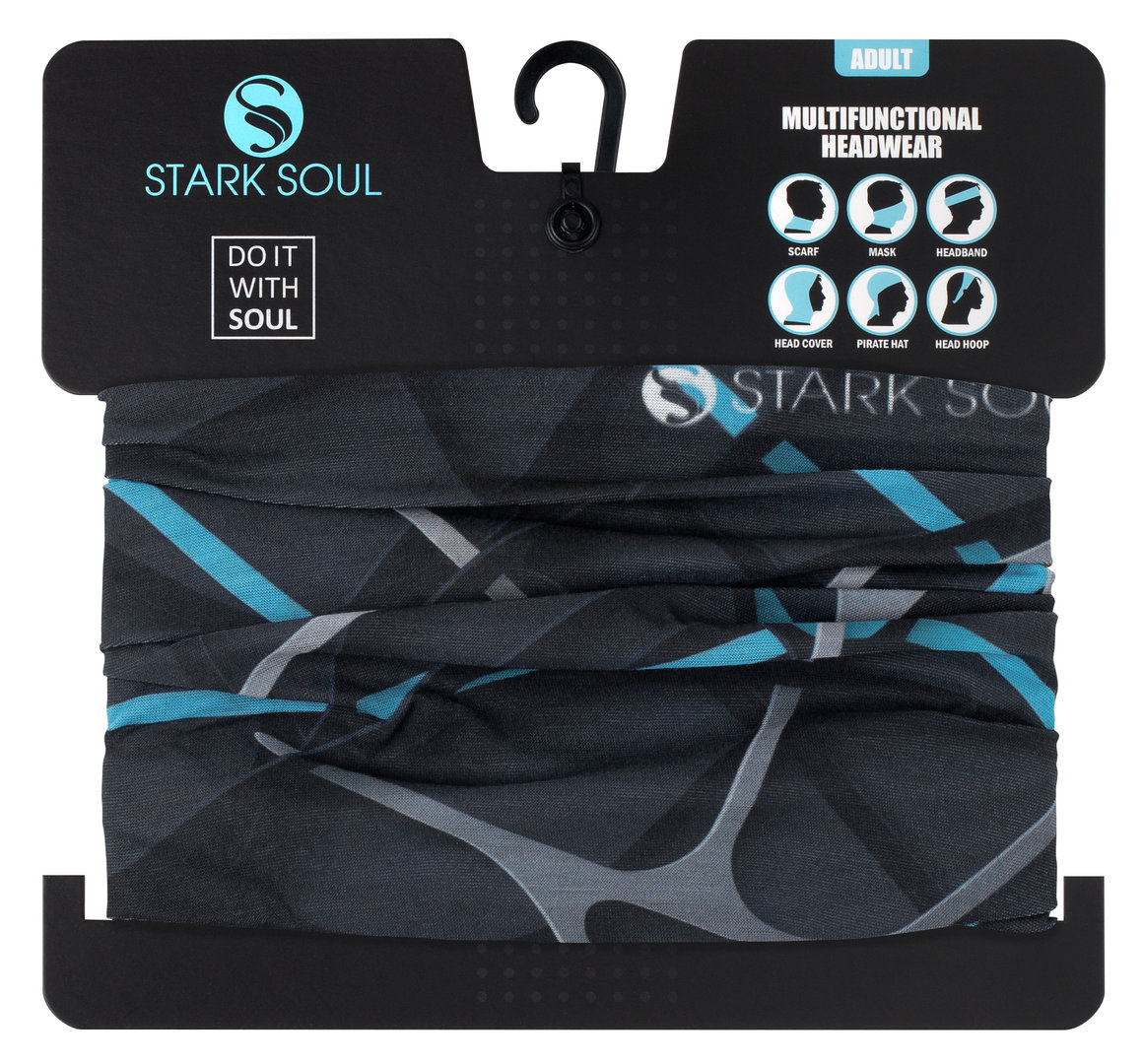 leichtes Halstuch mit weichem Handfeeling durch das schöne Mikrofaser-Material | hautsympathisch | hoher UV Schutz | perfekte Passform durch den angenehmen Stretch | sehr hochwertig gearbeitet | perfekte Klimakontrolle und optimales Feuchtigkeitsmanagement | All-Over-Print mit Netz-Motiv und "Stark Soul" Schriftzug | der perfekte Begleiter für Sport oder als modisches Accessoires | multifunktional Einsetzbar als Halstuch, Mund-Nase-Maske, Stirnband, Beanie und vieles mehr