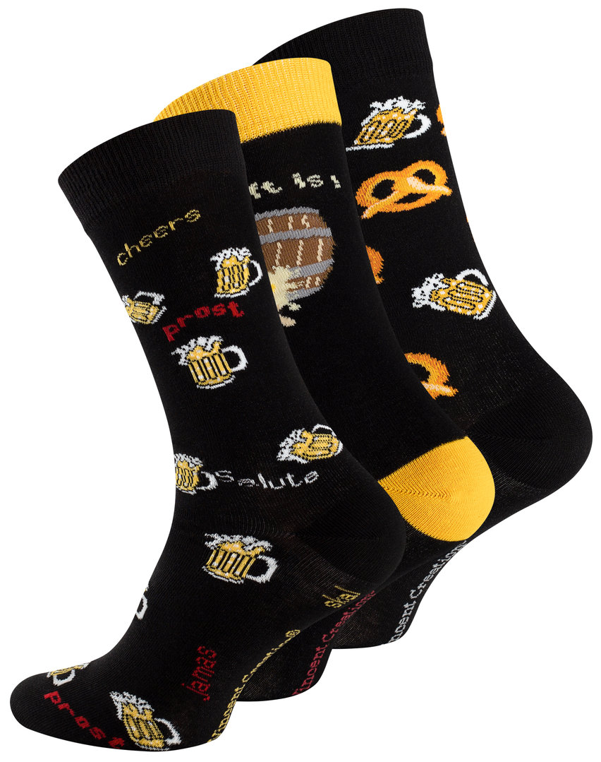 Vincent Creation® Herren Casual Socken mit lustigen "Bier & Pretzel" - Motiven im 3er Pack