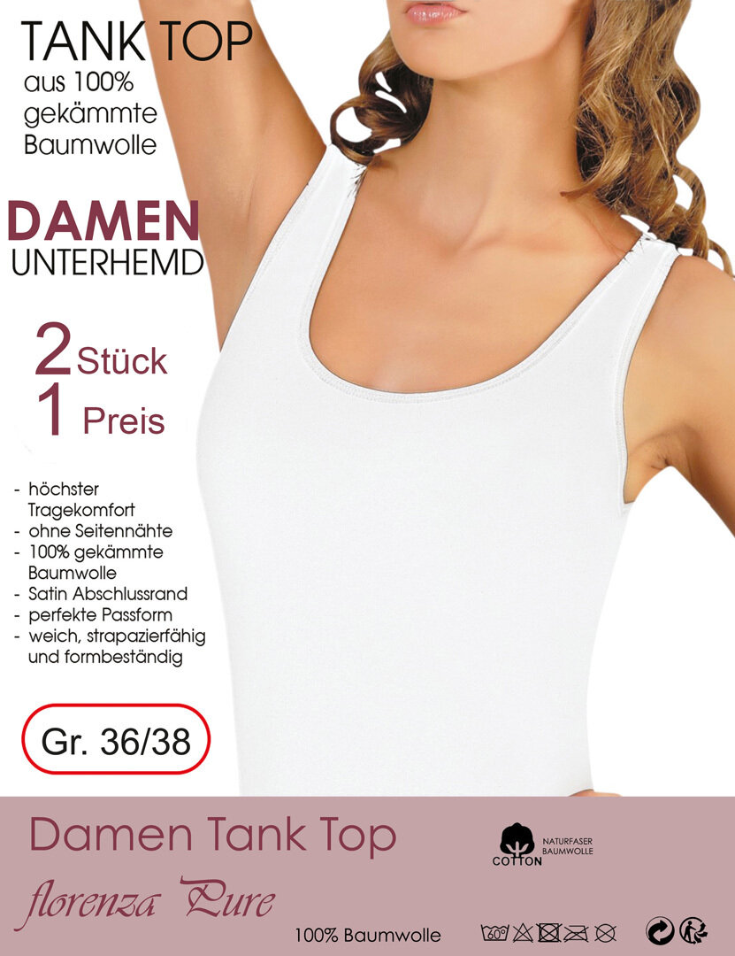 yenita® Damen Baumwoll Tank Top mit Satin-Abschlussbändchen in weiss im 2er Pack