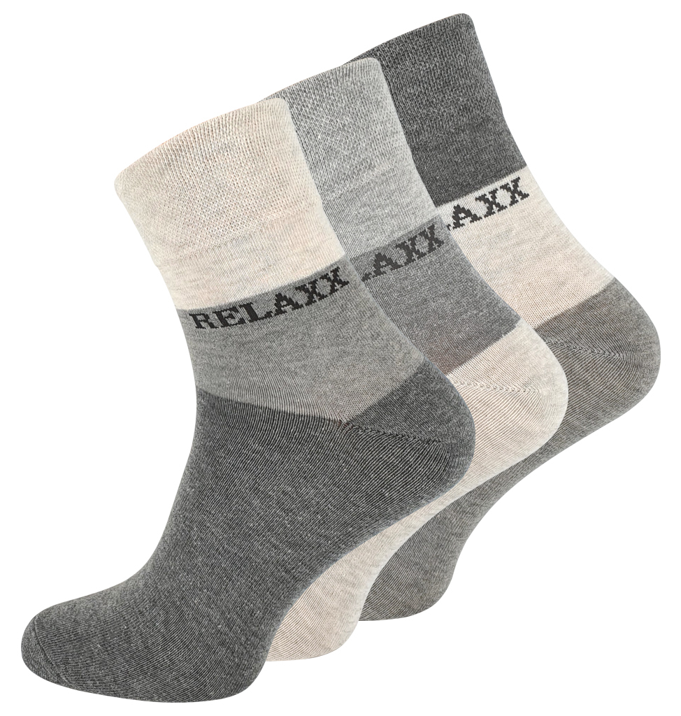 Herren Baumwoll Kurschaftsocken "RELAXX" ohne Gummibund im 3er Pack