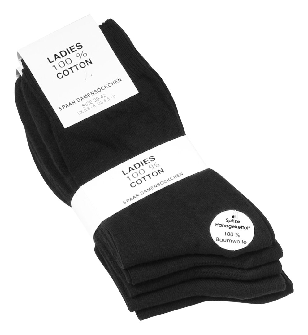 ladies 100% cotton socks in black 5 pack