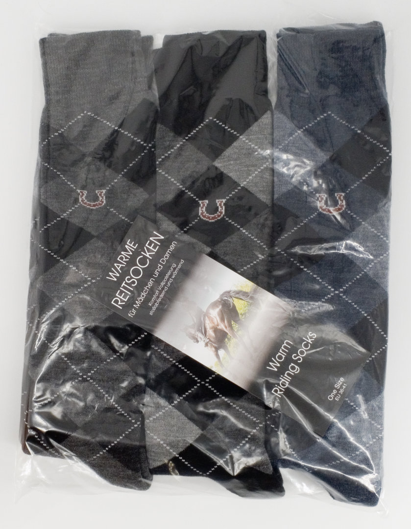 Damen vollfrottee Thermo Reitkniestrümpfe mit Rautenmuster im 3er Pack