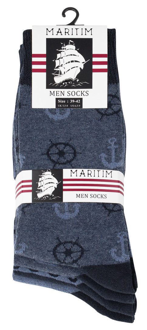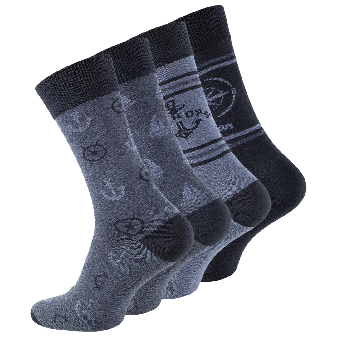 Herren Baumwoll Socken "MARITIM" mit Komfortbund im 4er Pack