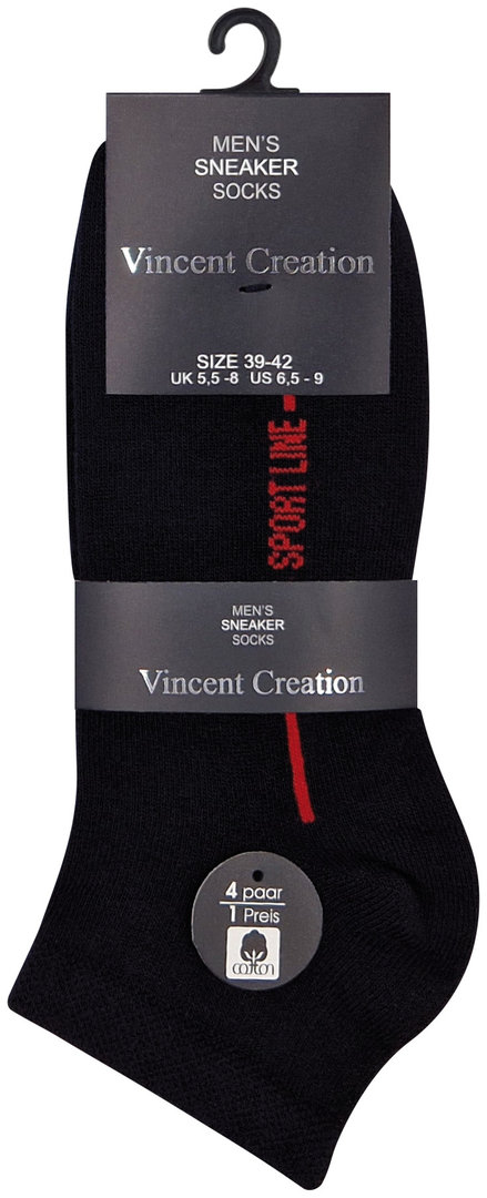 Vincent Creation® Herren Sneakersocken "SPORT LINE" mit Komfortnaht im 4er Pack