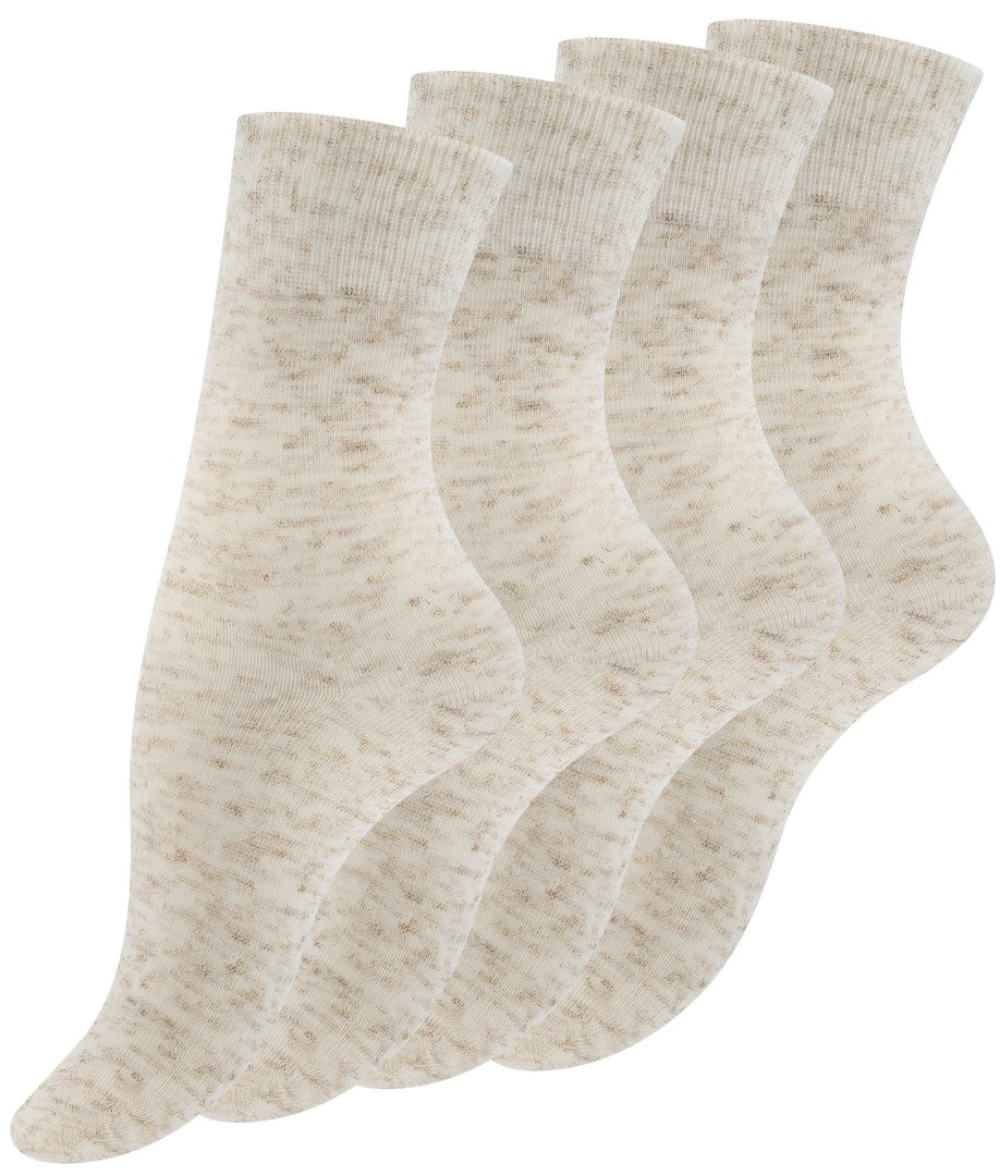 Damen Baumwoll-Leinen Söckchen "NATUR" in beige meliert im 3er Pack
