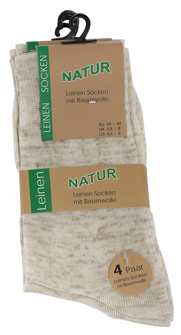 weicher Komfortbund | venenfreundlich | flache Zehennaht | klimaregulierende Eigenschaften durch den Baumwollanteil | sehr robust und strapazierfähig durch den Leinenanteil | angenehm weich | sehr naturnahes Tragegefühl