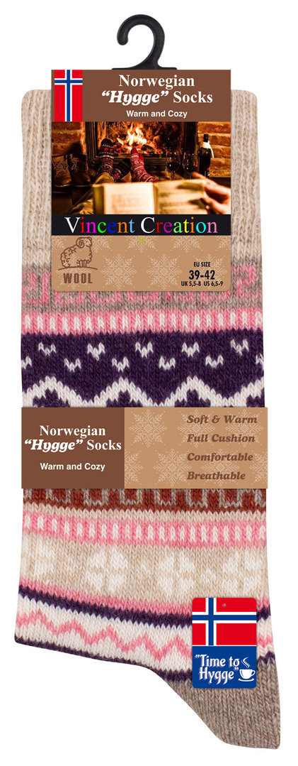 Damen NORWEGER Stricksocken HYGGE mit Wolle und bunten Designs im Einzelpack