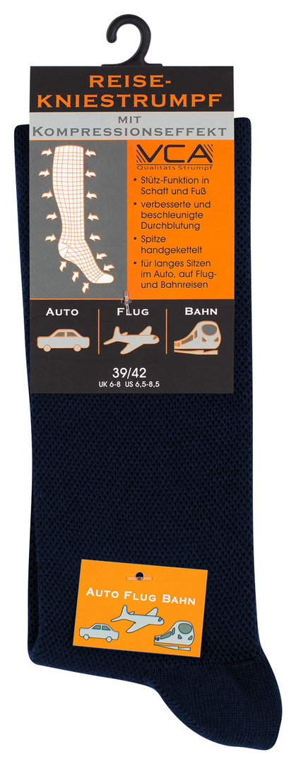 Stütz- und Reisekniestrümpfe sind ideal geeignet für lange Reisen, Tätigkeiten im Sitzen, Sport (zur Regeneration) und in der Schwangerschaft | sehr hoher Tragekomfort durch die handgekettelte Spitze (nahtlos und druckfrei an den Zehen) | Stützfunktion in Fuss und Schaft | der Kompressionseffekt verbessert und beschleunigt die Durchblutung | klimaregulierende Eigenschaften durch den hohen Baumwollanteil | faltenfreie und perfekte Passform durch den Elasthananteil